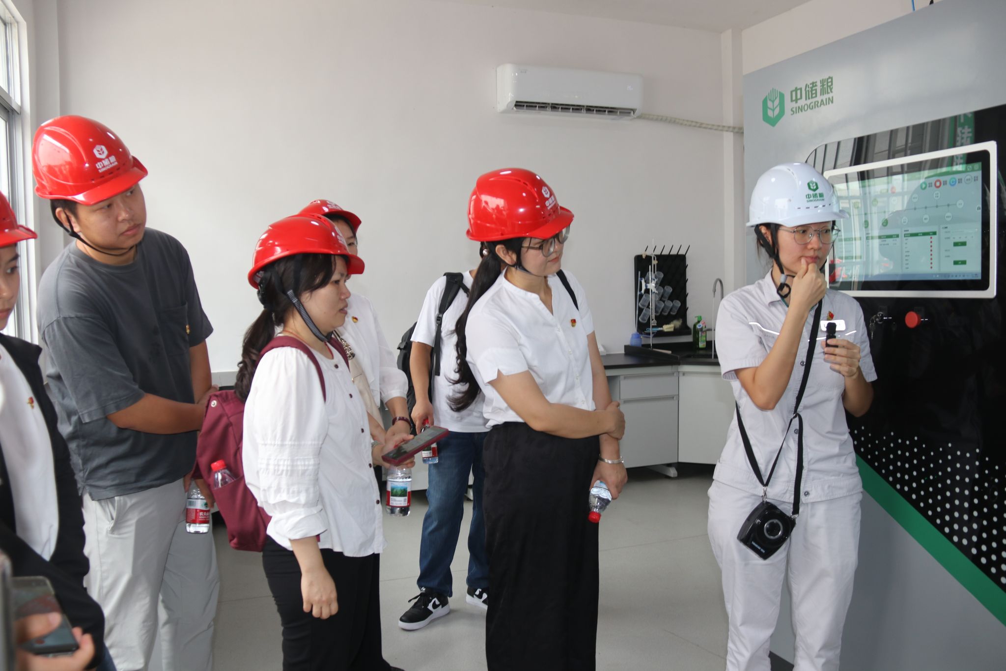 随后,全体党员参观了粮食仓库、智能扦检房以及智能粮库集中管控平台。通过实地参观和现场讲解,大家学习了粮仓储藏的基本原理和要求,深入了解了现代仓储和检验技术的发展现状,进一步认识到运用高新技术守护大国粮仓的重要现实意义。