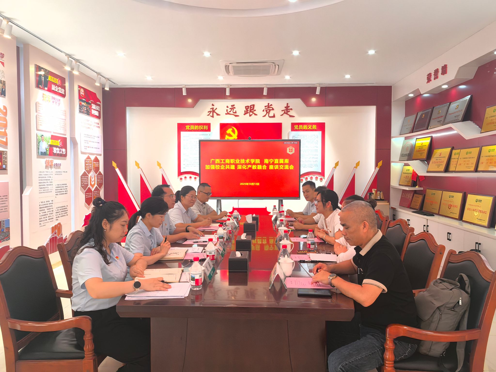 最后,粮油与管理学院班子成员与中储粮南宁直属库的领导举行了座谈会。双方就产教融合、校企合作等方面进行了深入交流与探讨。此次座谈会为学院推进教育教学高质量发展、构建高水平职业教育体系以及加强专业建设起到了积极的推动作用。