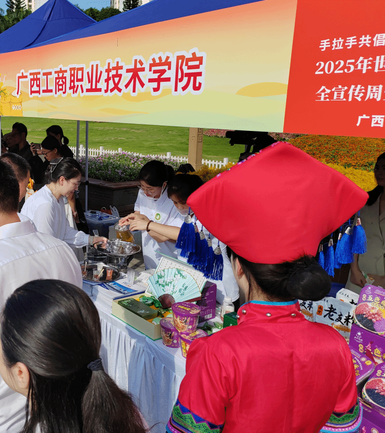 值得关注的是,活动还同步展示了我校与企业 “科教赋能产业” 的合作成果 —— 双方联合研发的广西特色传统民族风味食品,既保留民族饮食文化特色,又融入科学加工技术,生动体现了产学研融合助力地方特色产业发展的积极成效。