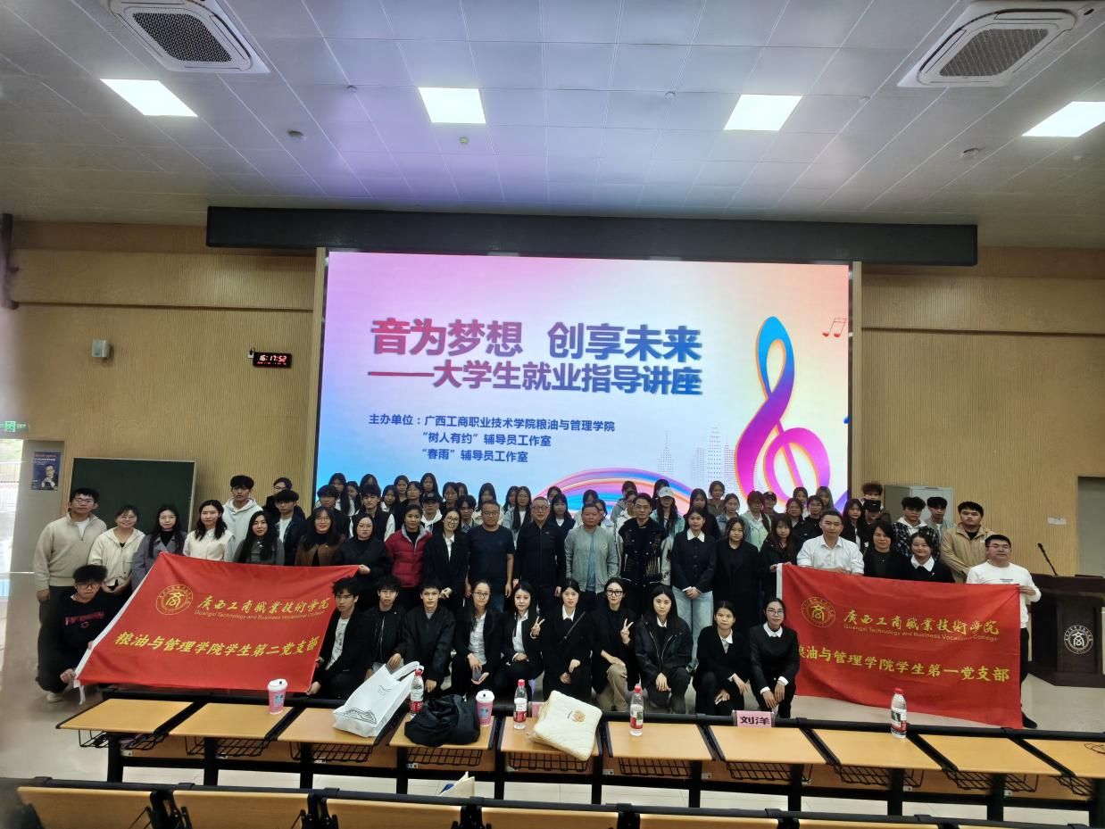 为引导大学生树立正确就业观,将个人发展与国家需求、民族利益相结合,粮油与管理学院举办“音为梦想 创享未来”大学生创业就业指导讲座,特邀晓雯音乐董事长叶军主讲,粮管学院的师生参加活动。