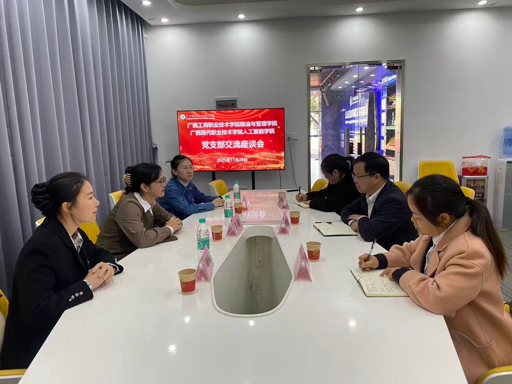 上午,党员教师们前往广西现代职业技术学院人工智能学院进行专题学习交流。在座谈会上,双方围绕专业特色、职业教育改革、校企合作、党建工作等议题展开深入探讨。随后,老师们在人工智能学院领导的带领下实地参观了无人机展厅,详细了解学院在产教融合、技术创新等方面的实践成果。活动中,老师们还参观了广西现代职业技术学院智慧党建+大思政教育研学基地。