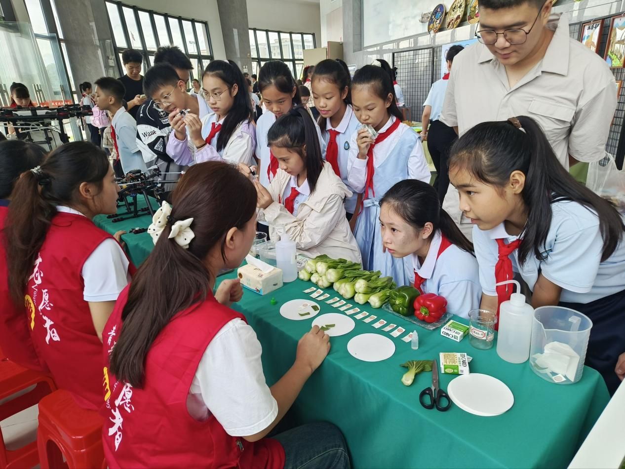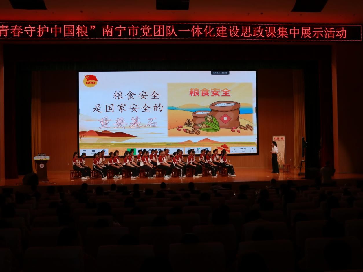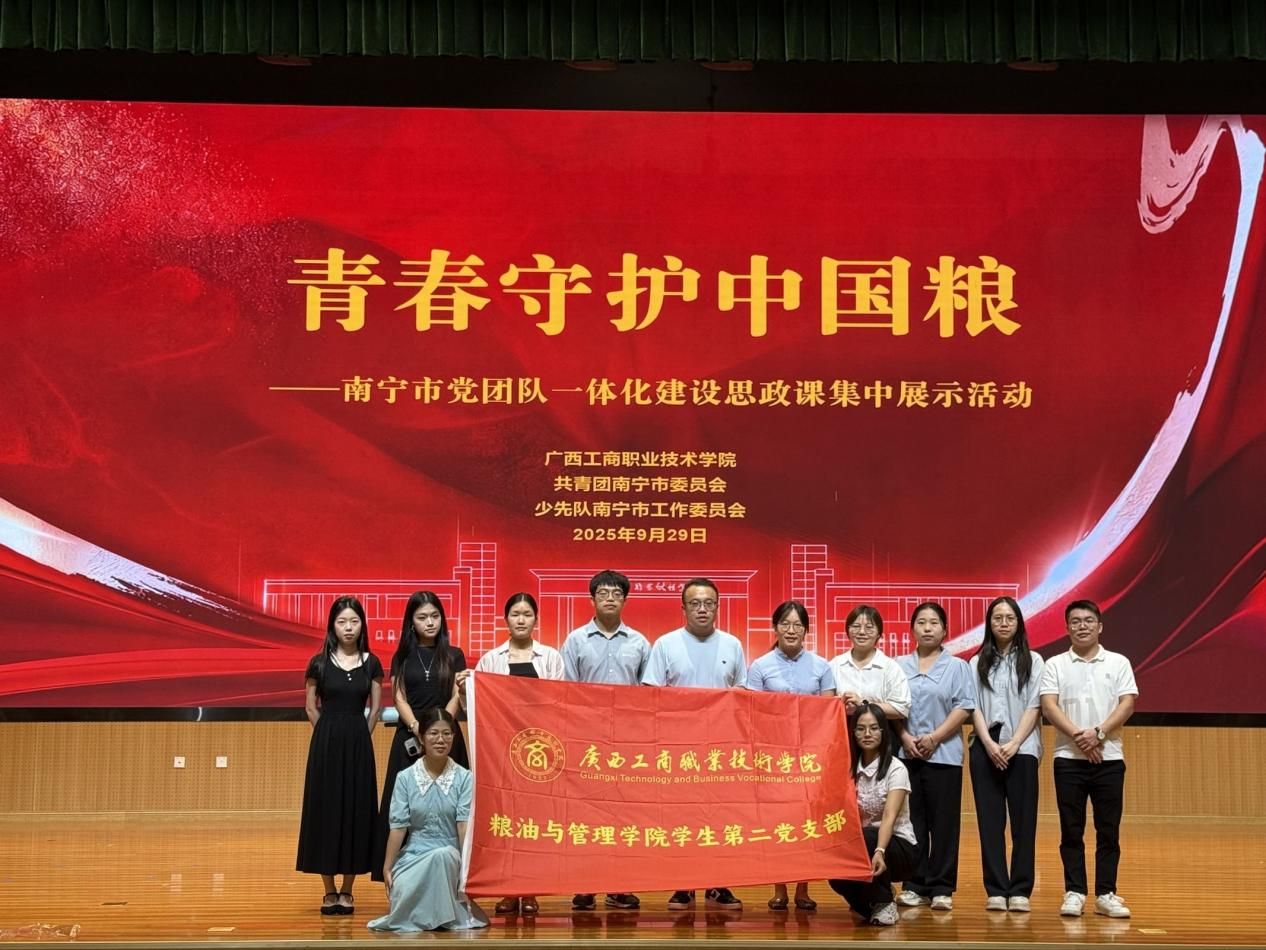 活动伊始,党员们在现场观看《青禾少年》、壮瑶医药绣球操等表演;学习江南区华府路小学校长严涓镱分享《红领巾食育食堂:培育新时代好少年的特色阵地》课程建设成果、武鸣区民族中学团委书记韦雨贝带来《粮食安全,有我!--新时代青年团员的“粮”心使命》主题团课、我校林勇灵教授带来青春思政课《守护粮食安全 端牢中国饭碗》等内容。在布展区、粮食文化馆现场,由第二支部党员统筹的现场活动也在有条不紊地开展。与会代表在布展区观摩了绿色智能储粮模型、现代智慧农业无人机设备、农药残留物快速检测等项目展示,由我院学生组成的志愿者讲解团队,以专业细致的讲解服务,获得了与会嘉宾的一致好评。与会代表参观了粮食文化馆,通过丰富的馆藏实物和史料图片,全面展示了我国粮食事业发展历程,成为学校开展粮食安全教育的重要阵地。