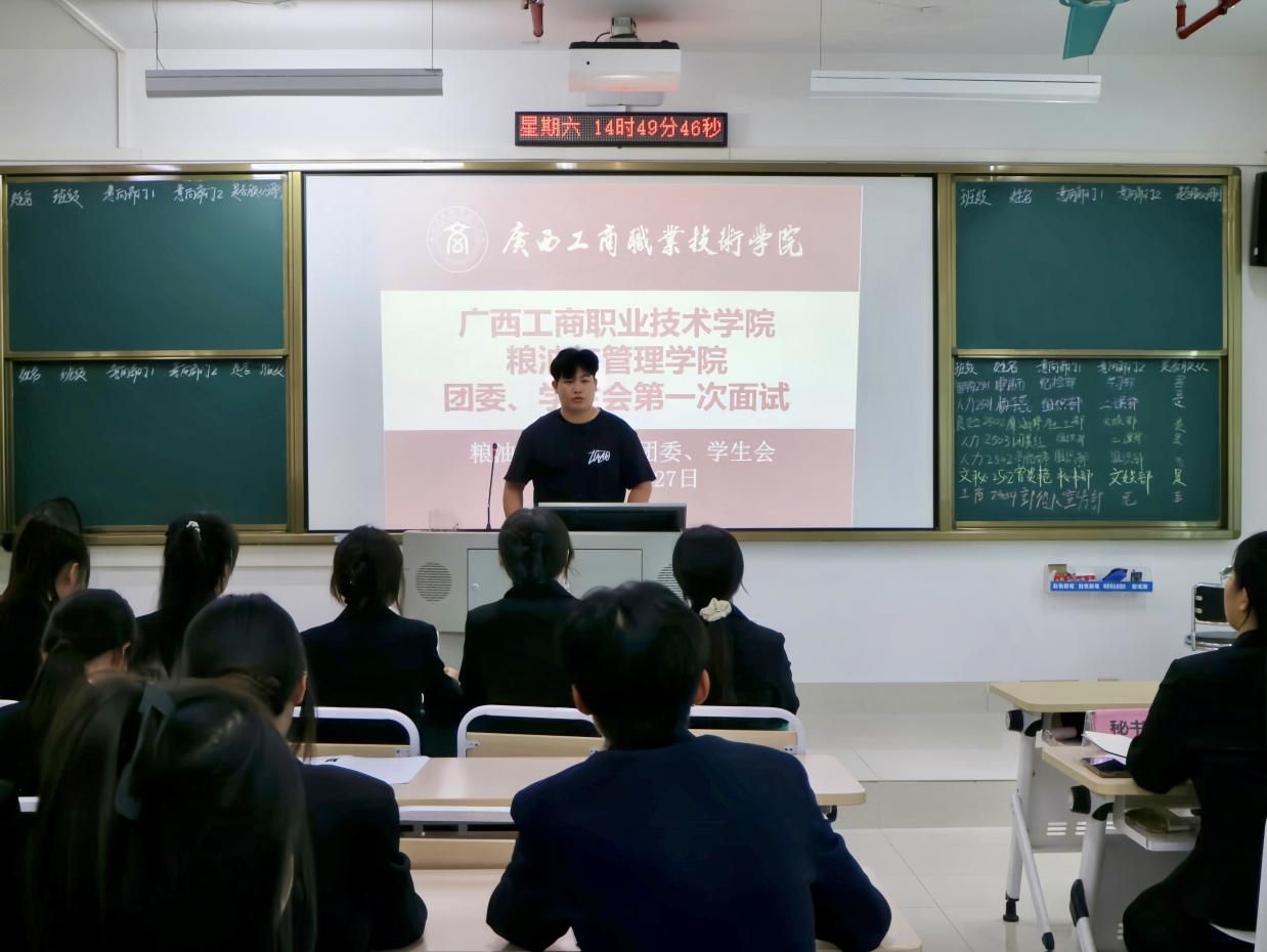 2025年9月27日14:00,粮油与管理学院团委、学生会于A2-401教室顺利开展2025级团学招新面试,旨在为学院团学组织吸纳新鲜血液,选拔责任心强、能力突出的新生力量,助力学院的学生工作高质量推进。