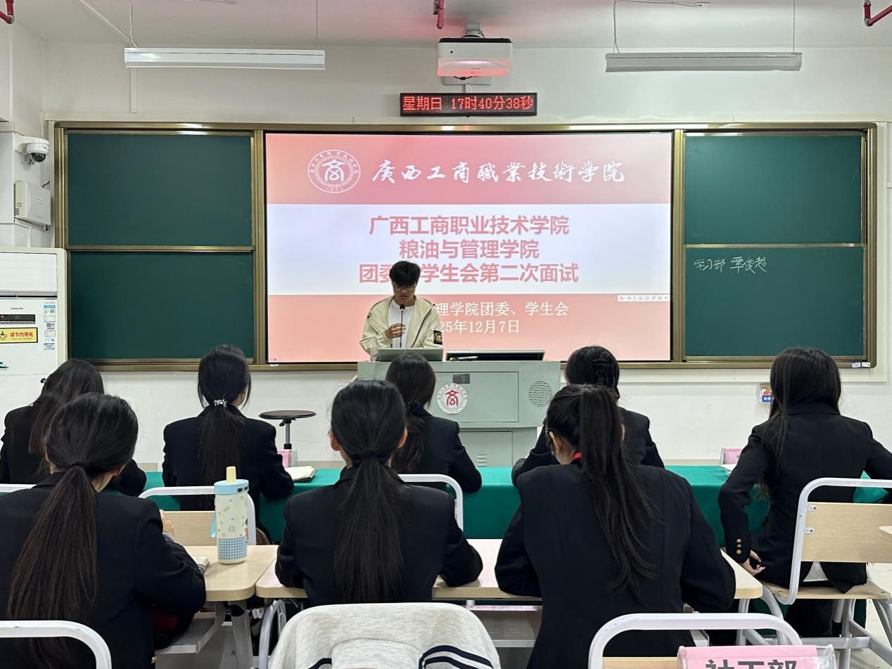此次面试既是对25级见习委员阶段工作成果的检验,也为粮油与管理学院团委、学生会注入优质新鲜血液提供保障。后续,学院团学会将以此次选拔为契机,持续强化队伍建设,助力学生骨干在服务同学、奉献校园中提升自我,推动学院学生工作稳步向前。