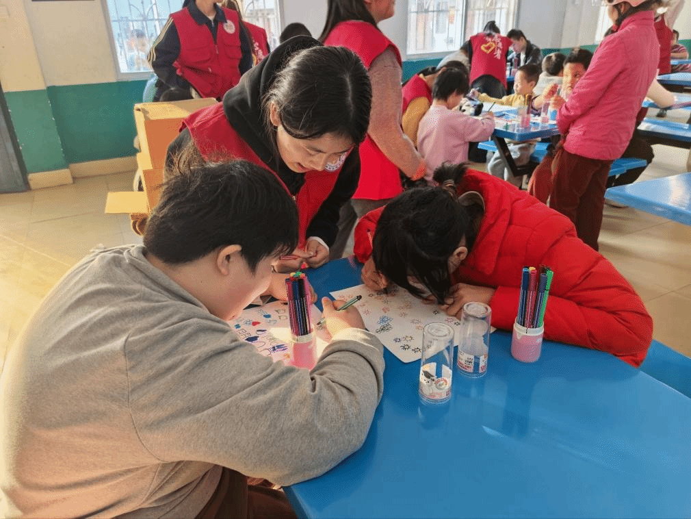 抵达特殊教育学校后,在学校老师的配合下,活动按计划有序开展。党员骨干老师与孩子们亲切交流,陪伴他们开展玩偶套圈、老鹰抓小鸡等趣味游戏,志愿者们手把手指导孩子们绘画创作,结合励志小故事传递向上向善的力量,用真诚与关爱走进孩子们的内心世界,同时协助学校老师整理教学场地、辅导孩子们功课,细致做好物资分发、场地保障等工作,以务实作风筑牢活动保障线。
