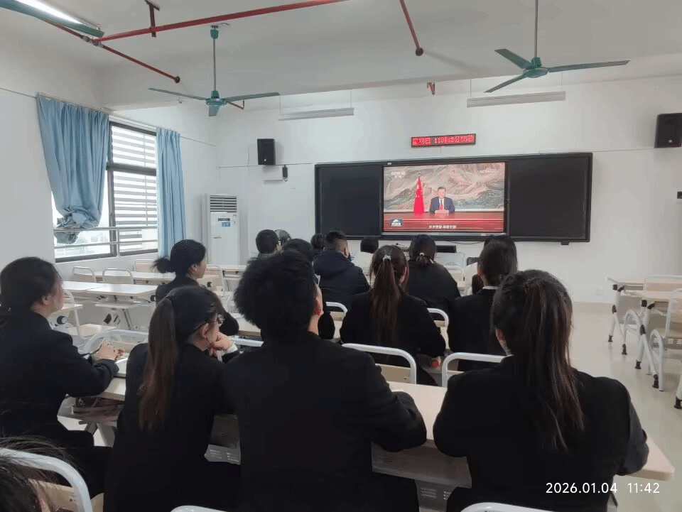 转正大会结束后,与会师生党员集中观看了《国家主席习近平发表二〇二六年新年贺词》视频。同志们认真聆听、深受鼓舞,纷纷表示要将总书记的殷切期望转化为奋进新征程的强大动力,在新时代伟大实践中勇担重任、砥砺前行。作为基层学生党支部,要始终牢记为党育人、为国育才的初心使命,将新年贺词精神融入日常教书育人与学生管理工作中,持续强化思想引领、夯实组织基础、优化服务机制,不断提升育人实效,努力培养更多有理想、敢担当、能吃苦、肯奋斗的新时代高素质人才,为学院高质量发展和教育强国建设贡献坚实力量。