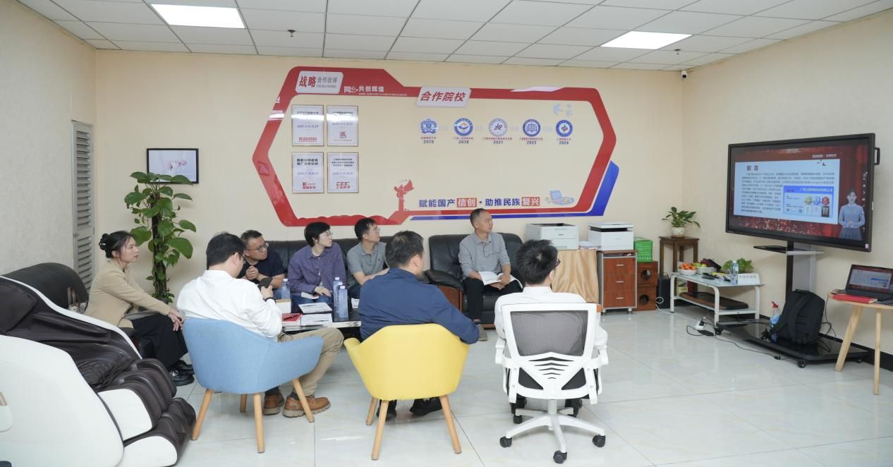 广西泛智网络科技有限公司总经理郑凯峰对学院一行表示热烈欢迎,并详细介绍了公司的发展历程、业务布局、核心技术及未来发展规划。结合前次实地考察的情况,双方围绕无人机专业的未来发展方向、人才培养方案升级等关键事宜充分交换意见,重点就无人机植保作业、粮库安全防护、无人机技能训练等贴合学院专业特色和企业业务需求的领域,展开了深入细致的洽谈,进一步明确了合作思路与具体方向。