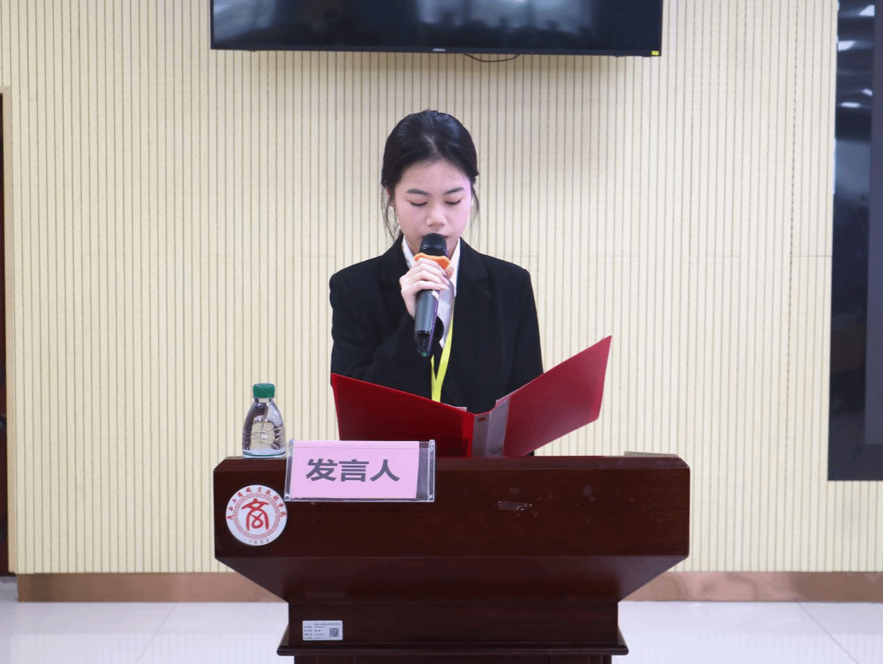 图为 学生会主席团成员潘艳秋发言