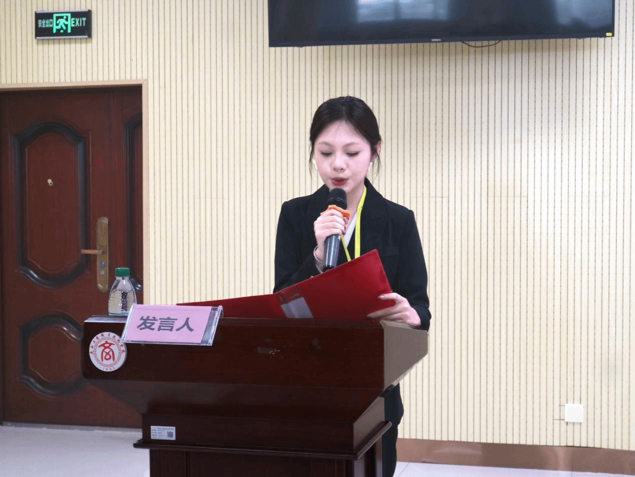 图为 团委学生副书记周珊珊进行发言