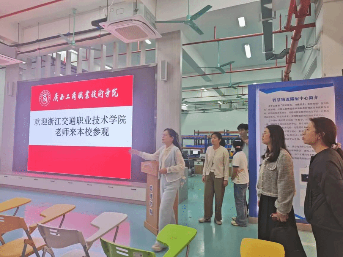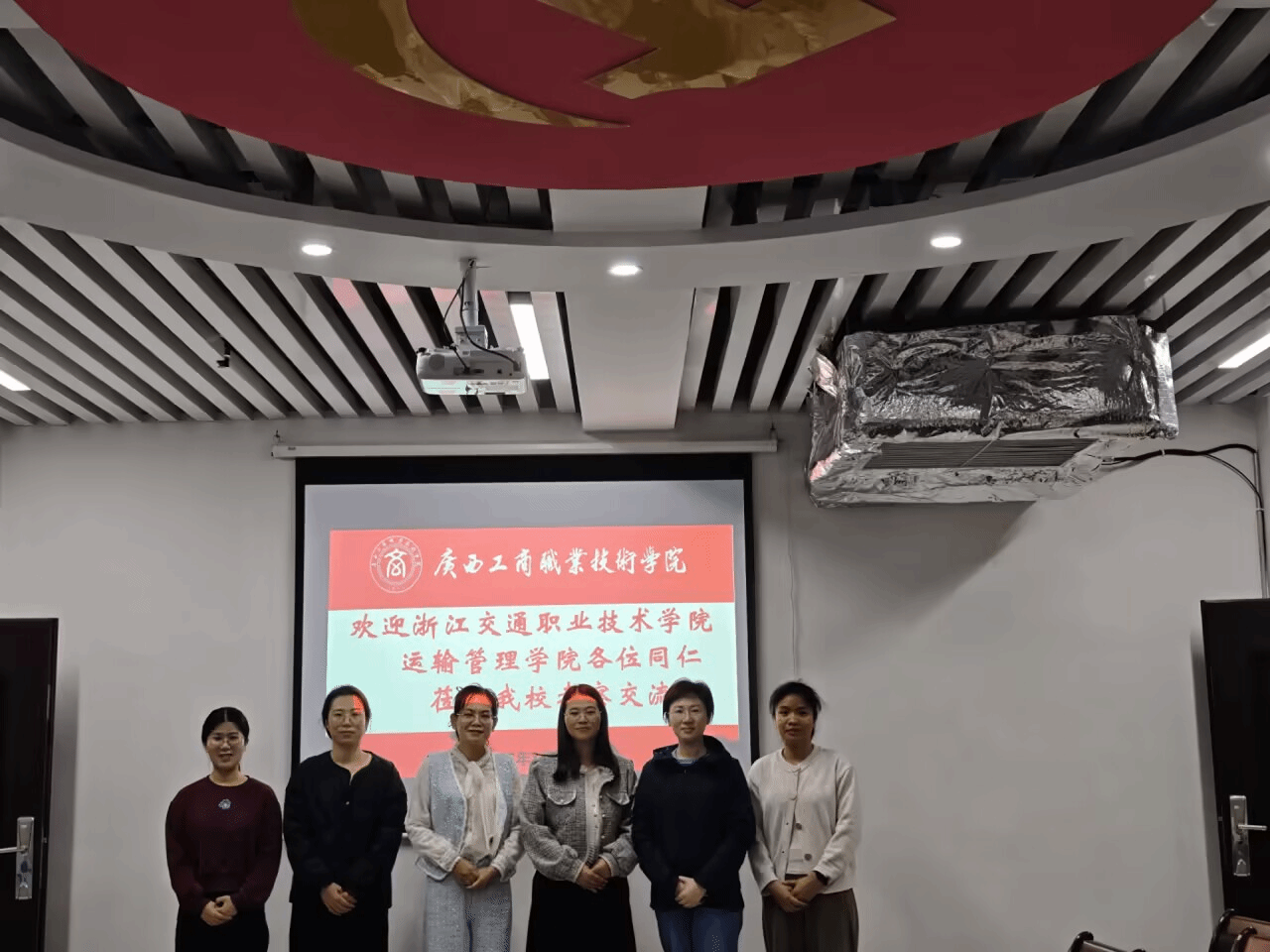 2026年3月19日,浙江交通职业技术学院运输管理学院科研副院长程文、现代物流管理专业副主任牛雅娟一行,赴广西工商职业技术学院粮油与管理学院开展现代物流管理专业建设专项调研交流,粮油与管理学院教学副院长、专业带头人介绍了本院办学特色、专业建设现状与转型发展规划,结合粮油流通、商贸管理专业特色,双方就建设发展中的难点问题与对方深入研讨。